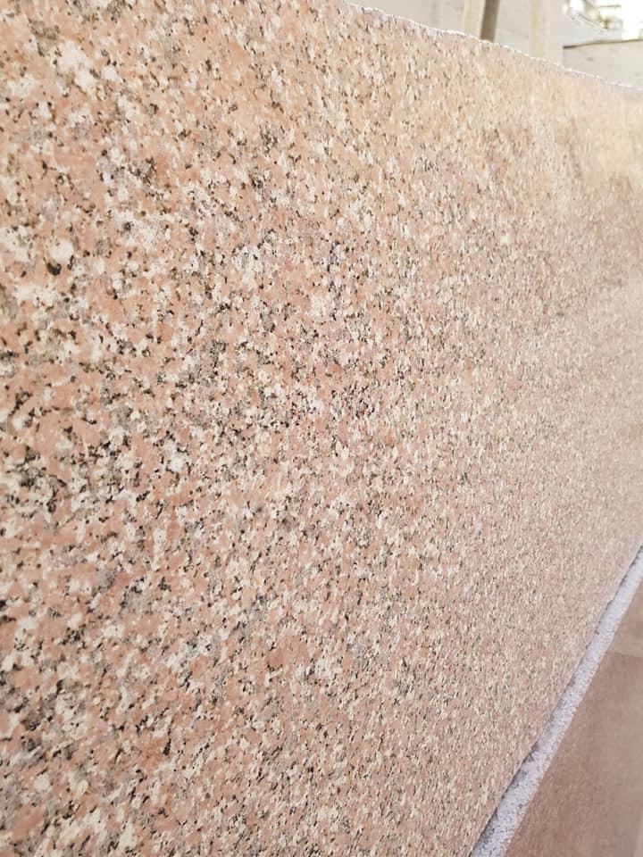 Elegant pink granite featuring white and black crystalline textures. Perfect for interior surfaces, stairs, and decorative stonework.