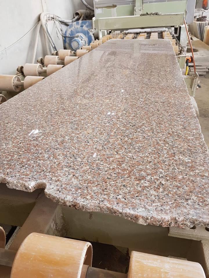 Beyaz ve siyah kristal dokulara sahip zarif pembe granit. İç mekân yüzeyleri, merdivenler ve dekoratif taş işleri için mükemmeldir.
